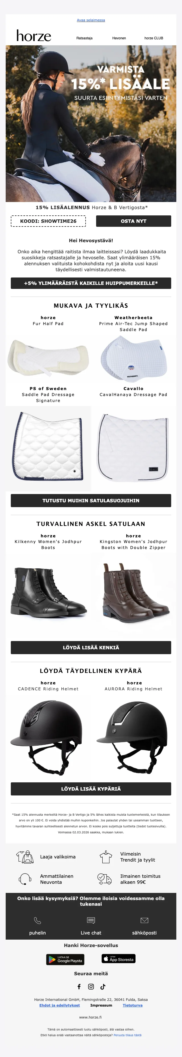 Ratsastustarvikkeet netistä edullisemmin käyttämällä Horze alennuskoodi
