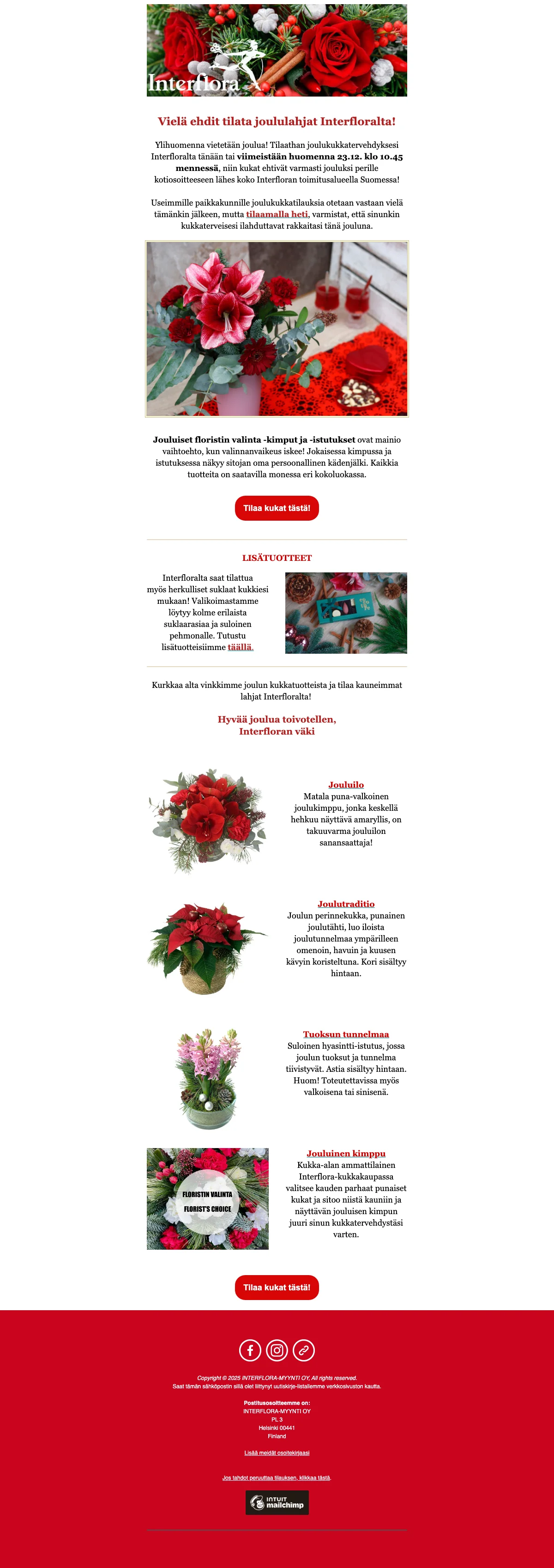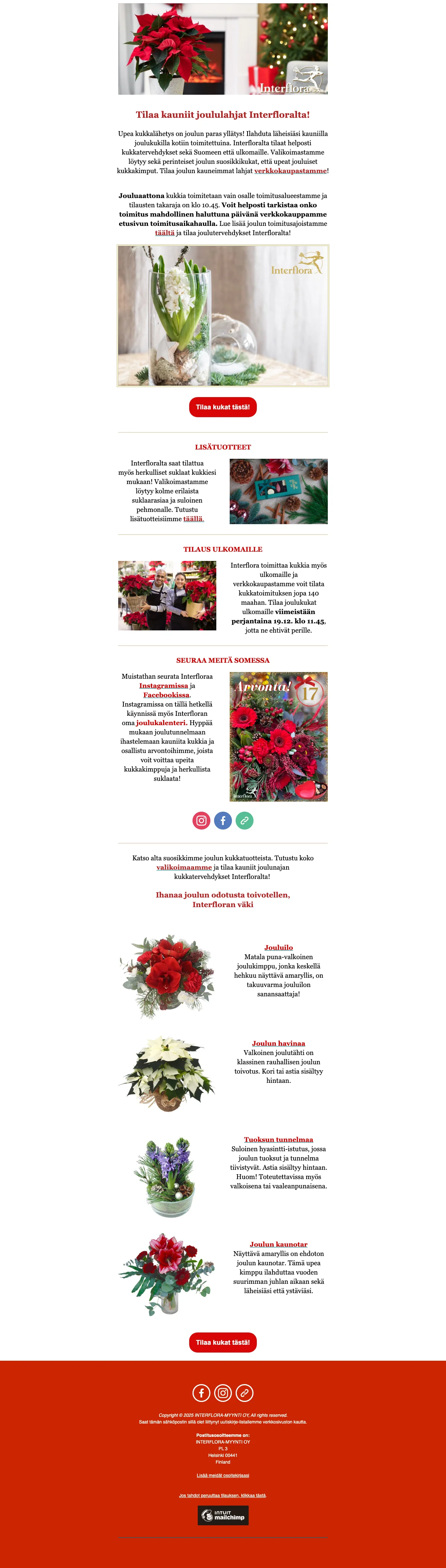 Interflora joulukukat 5€ alennus ennakkotilauksista säästä nyt