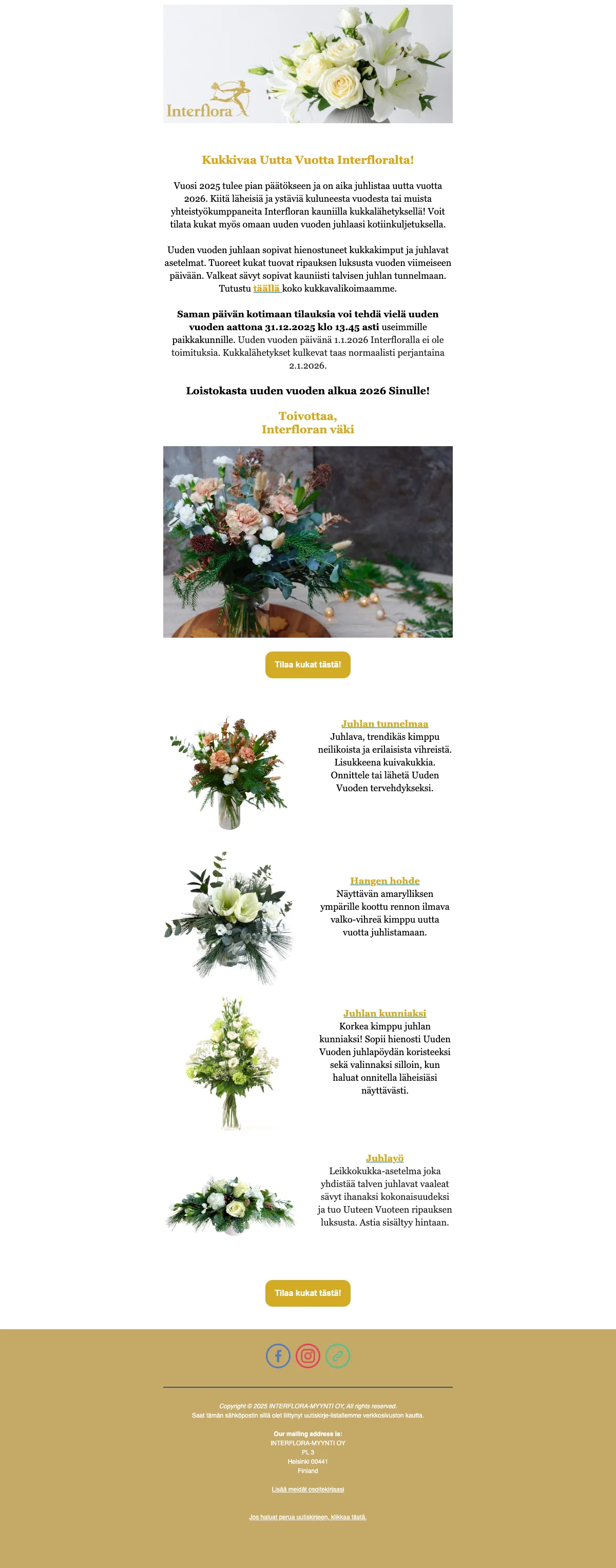Voit ottaa yhteyttä Interflora asiakaspalveluun puhelimitse tai sähköisellä lomakkeella.