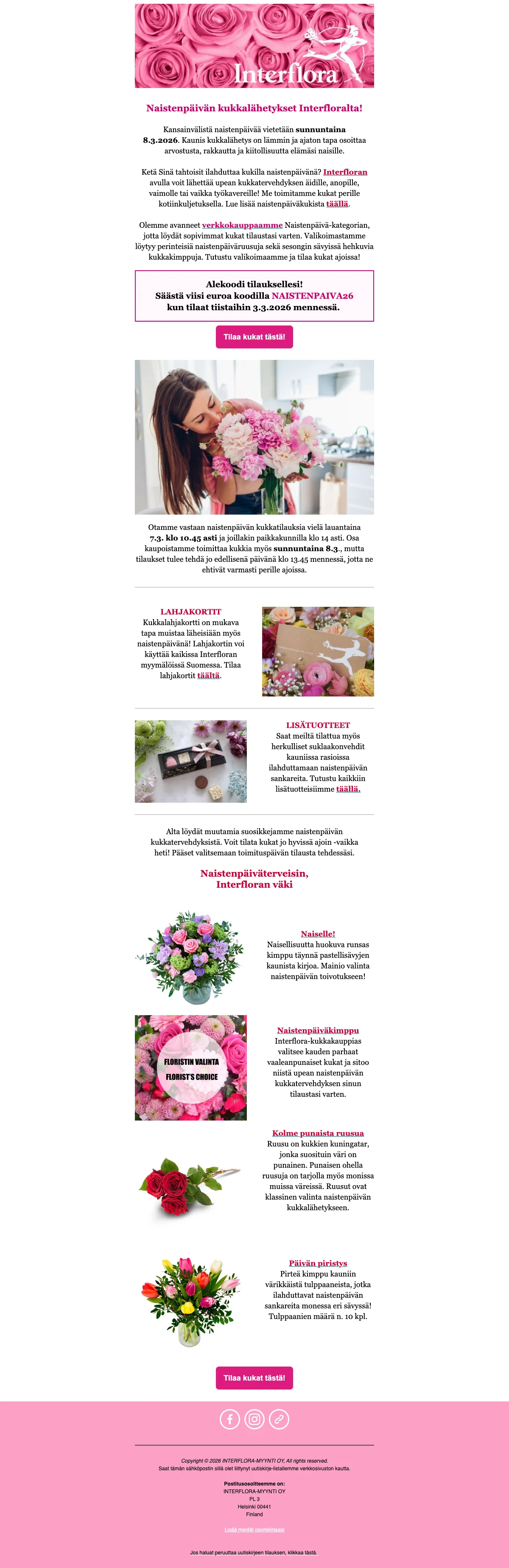 Interflora alennuskoodi Suomi - maaliskuu 2026