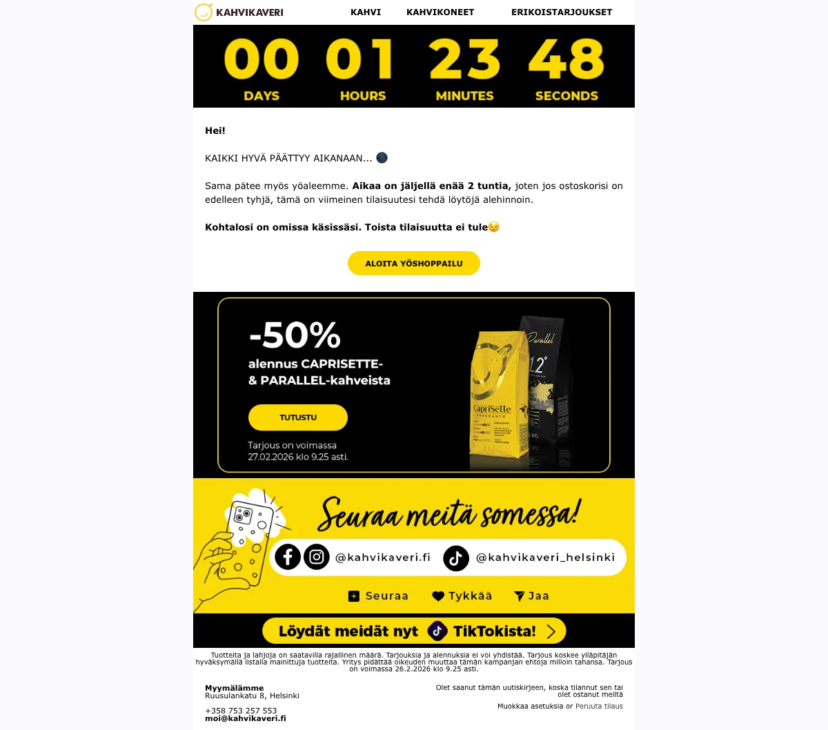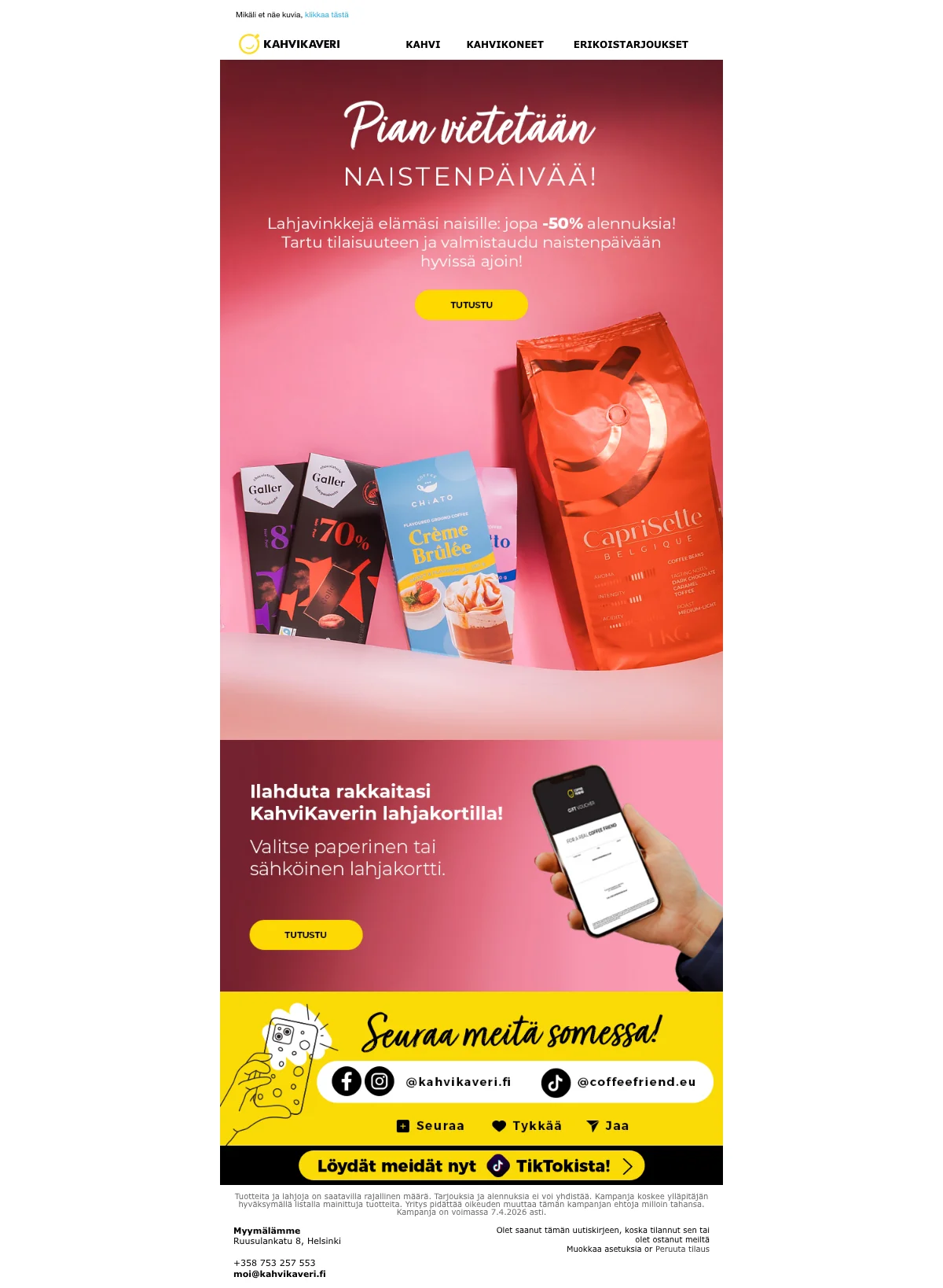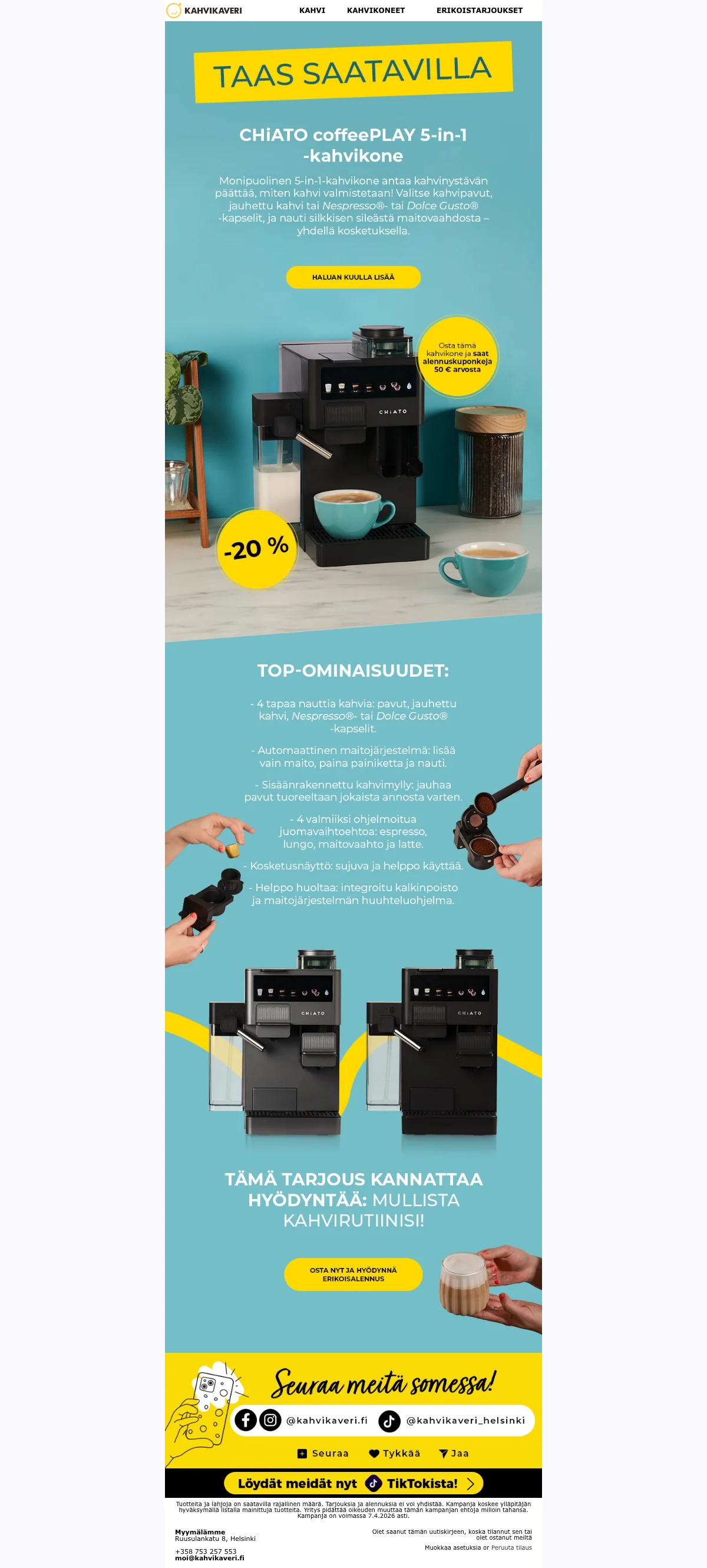 | CFBASKET | Kahvikaveri alennuskoodi: 15€ alennus 500€:n ostoksista |