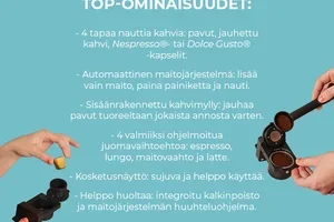 Laitteiden lisäksi verkkokaupan valikoima kattaa kahvikapselit sekä kahvipavut. Monipuolisesta valikoimasta löydät suositut kahvikapselit kuten esimerkiksi Nescafe Dolce Gusto kapselit. Laajan valikoiman ansiosta luot herkullisia kahvihetkiä erilaisiin tilaisuuksiin. Nauti vaikkapa sunnuntai-brunssi kotona herkullisella kahvilla höystettynä tai pyydä ystäviä kylään juomaan cappucinot. Arkeen taas sopii mainiosti ihan tavallinen kahvi, ja jos arkiaamuna väsyttää tavallista enemmän, saat päivään potkua espressolla!