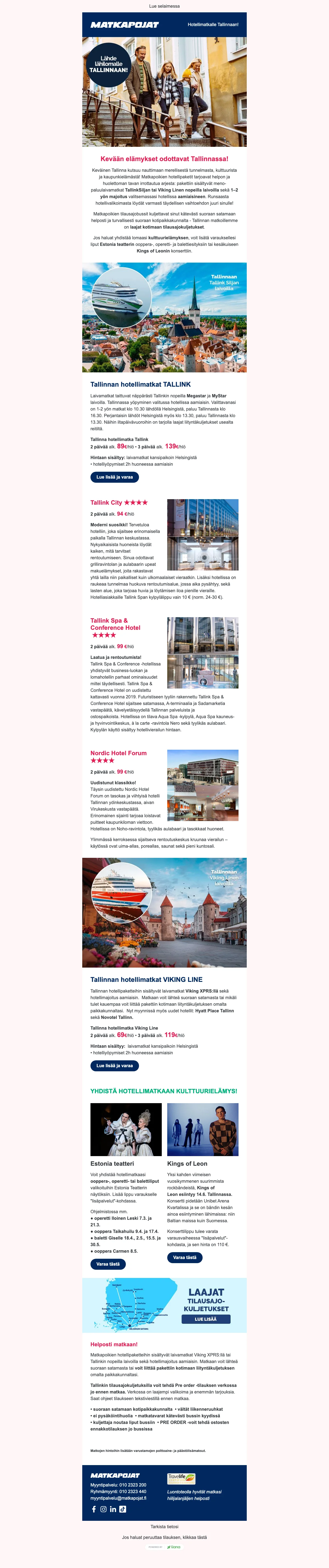 Täyden palvelun matkatoimisto tietää, mitä matkustajat kaipaavat. Tuhannet suomalaiset luottavat joka vuosi Matkapoikien edullisiin hintoihin ja mahtavaan palveluun. Laivalla Tallinnaan vai halvat lennot Eurooppaan? Kaikki onnistuu tämän matkatoimiston kautta, joten olipa hakusessa Matkapojat Pärnu - tai Matkapojat Visby -loma, löydät ne tästä matkatoimistosta. Kun haluat käyttää rahaa enemmän itseesi ja vähemmän matkustamiseen, kokeile Matkapojat palvelua! Tukholman risteily onnistuu siinä samassa missä lento Amsterdamiin, aina edullisesti.