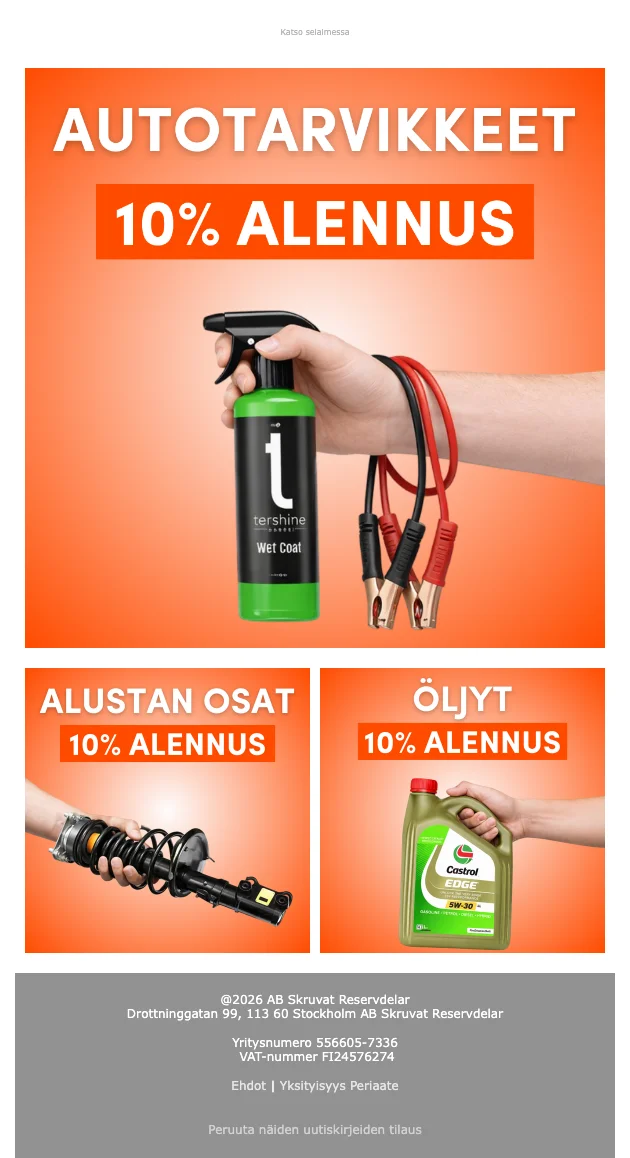 Skruvat autotarvikkeet 15% alennus — kaikki paitsi renkaat ja vanteet