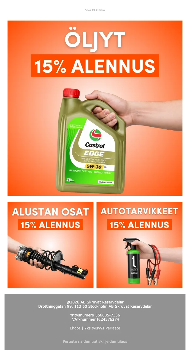 Skruvat.fi Castrol-öljyt 10% alennus — myös alustan osista